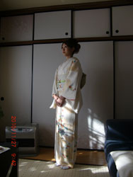 二枚目、影になっておりますが、美しいエステティシャンのお客様。白の訪問着お似合いです。