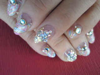 ブルーのスワロノフスキーで締め、周りはオーロラ。