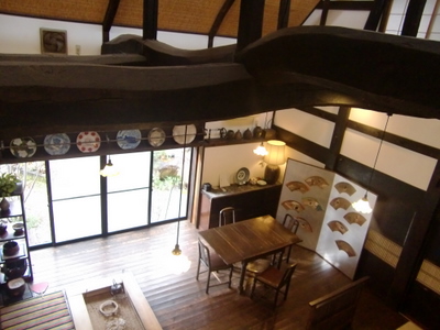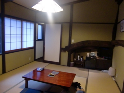 私の部屋から見えるロビー。いろりがある。