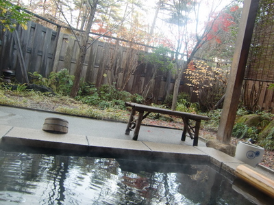 露天風呂はずぶう~っとつかると目線に可愛い高原の花や落ち葉がみえて、自然の中の自分というのがわかる。