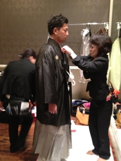 中座は20分!新郎着付けに一生懸命な着付けのA先生。
