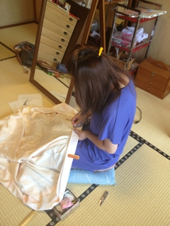 最初は半襟付けから。