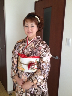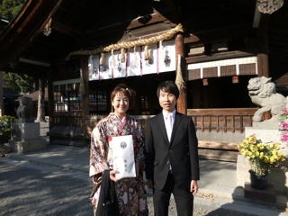 神社にて結婚奉告の為着物をお召しになり行かれたお客様。