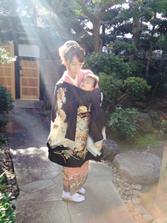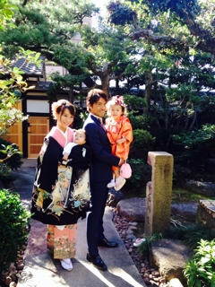 名古屋の閑静な住宅地の中に、白壁で黒の屋根の日本家屋のご自宅で、七五三のロケ撮影がありました。其の際のお母様とお子様の着付けヘアメイクをさせて頂きました。