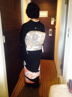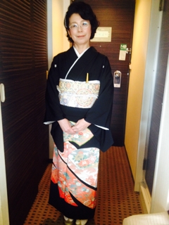 支度が終わって、大学生のお嬢様に「お母さん!とっても綺麗!」と言われたそうで、大変喜んだメールを頂きました^_^美しいですね。お着物の色も大変お似合いです。