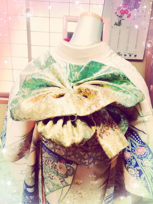 毎回感心します。先生の丁寧で一手一手キチンと心を込めてヒダを折るバランスの良い美しい帯結びに。ウットリ眺めるmami